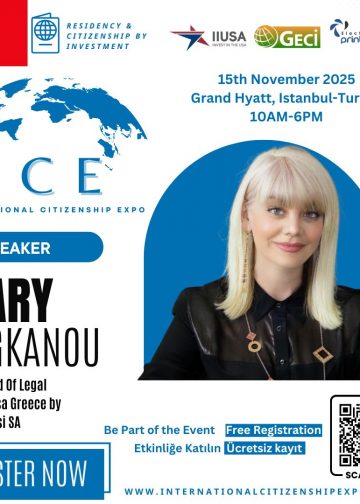 Our CEO, Mary Tsiganou will participate as a speaker at the International Citizenship Expo (ICE), scheduled for 15th November 2025 at the Grand Hyatt, Istanbul. During the event, Mary will deliver insights on residency and citizenship through investment, examining how strategic migration programs can create new avenues for investors and global citizens seeking enhanced mobility...