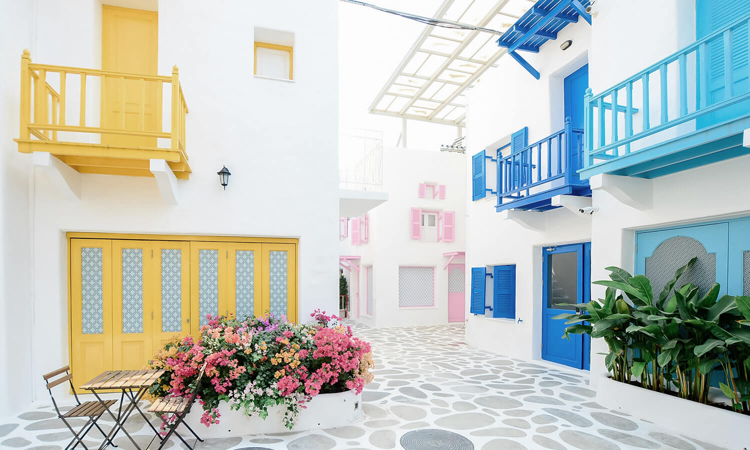 独特的建筑巧妙地把蓝白两色揉合(意喻希腊的国旗),加上石板街道,构成了一幅风景画,随时供人们去探索和享受。